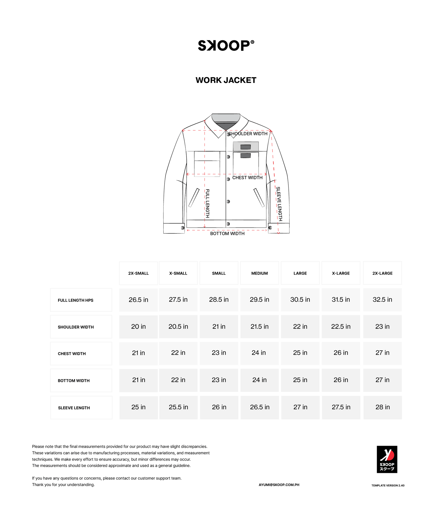 Description: Collared, relaxed-fit work jacket with electroplated SKOOP-branded snap button closures, Velcro patch pockets, and side welt pockets with hidden snap closures.